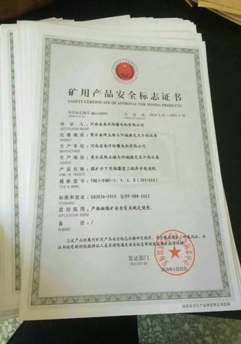 隨著國家對煤礦開采行業(yè)的規(guī)范要求加大,一部分落后電機(jī)逐漸被市場淘汰,根據(jù)國家要求和市場需求,經(jīng)過相關(guān)職能部門嚴(yán)格把關(guān),我公司經(jīng)過考核,順利取得