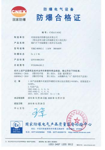 YBK3防爆電機(jī)的合格證和煤安證。